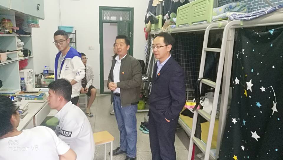 为深入了解材料与环境工程学院学生宿舍卫生及安全情况,提高学生的安全意识,营造良好的学生生活环境。10月16日下午,材料与环境工程学院党委书记何贵林、副院长陈建兵、学生工作办公室主任王文广老师,团总支关旋老师深入学生宿舍进行抽查走访。
