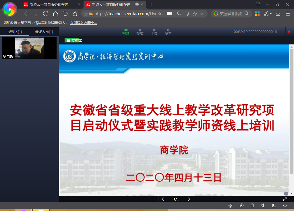 4月13日,商学院召开省级重大线上实践教学改革研究项目启动暨实践教学师资线上培训和开课布置会,研究部署安徽省省级重大线上实践教学改革研究项目工作和实践教学师资线上培训及线上开课工作。商学院班子成员、各教研室主任、教学办公室主任、秘书、实验技术员线下在会议室参加了会议,各实践课程授课老师及新道、世格软件等多家软件和平台供给商的工程师线上参加了会议,会议采取全程直播形式召开。
