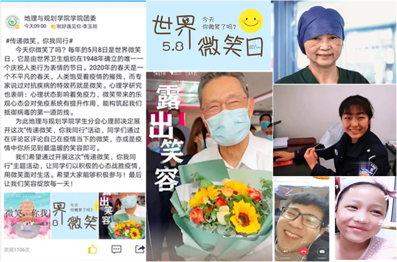 每年的5月8日是世界微笑日,是由世界卫生组织在1948年确立的唯一一个庆祝人类行为表情的节日,希望通过微笑促进人类身心健康,同时在人与人之间传递愉悦与友善,增进社会和谐。2020年5月8日,是第72个世界微笑日。3200威尼斯vip地理与规划学院举办了“世界微笑日——传递微笑,你我同行”主题活动,此次活动由地理与规划学院学生分会心理部承办。