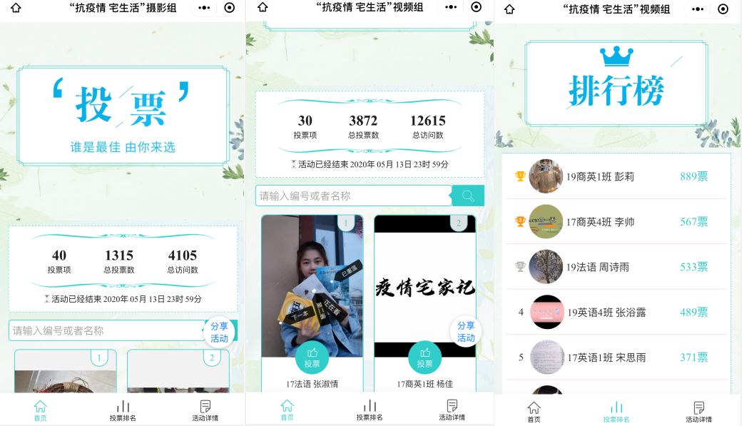 为展现外国语学院师生积极面对疫情、参与疫情防控、乐观生活、努力工作和学习等积极向上的生活场景,外国语学院于4月至5月举行了“抗疫情,宅生活”摄影、短视频比赛。