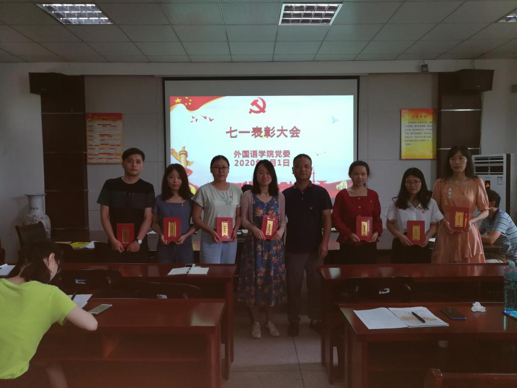 会上,刘军宣读了外国语学院优秀党员表彰决定、副院长余义兵为优秀党员颁发了荣誉证书。