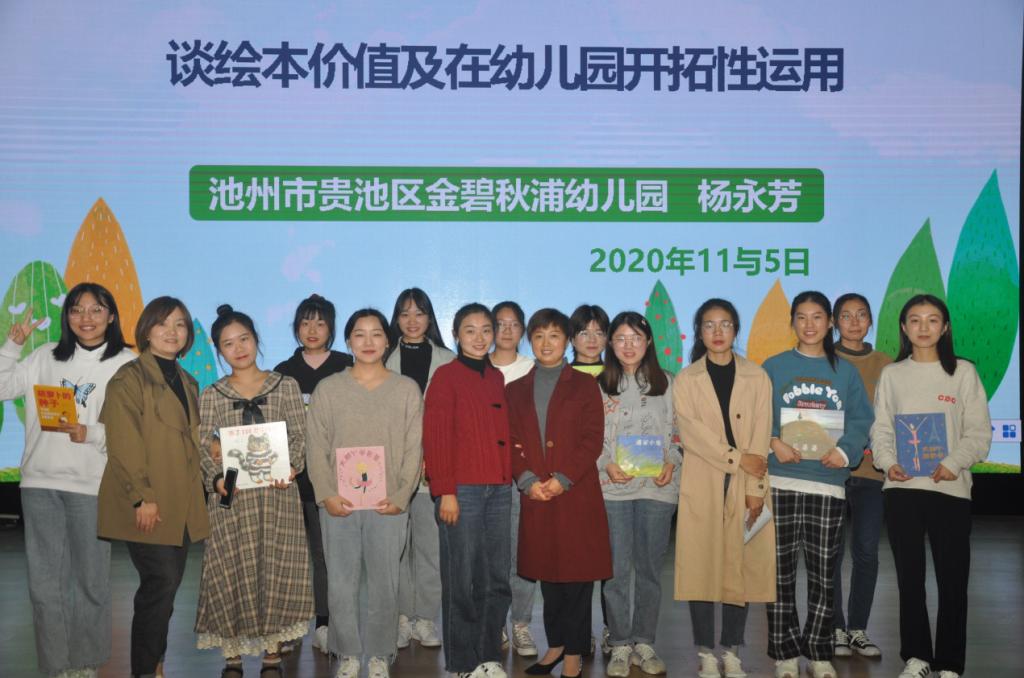 金碧秋浦幼儿园杨永芳园长在以《谈绘本价值及在幼儿园开拓性运用》为题的讲座中,分享了她与绘本教育的缘起和经验。介绍了金碧秋浦幼儿园以绘本为特色的教育教学,杨园长认为绘本凭借丰富的色彩,生动的图画,无穷的想象,给幼儿带来巨大的精神享受,是他们成长的伴侣,精神的家园。