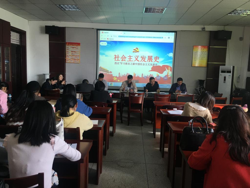 外国语学院结合“四史”主题教育要求,不断加强教职工思想政治教育。10月份认真组织学习了习近平总书记在全国抗击新冠肺炎疫情表彰大会上的重要讲话精神,大力弘扬抗疫精神;11月份组织开展“四史”专题政治学习,会上刘军还以“社会主义发展史”为题,为全体教职工进行了社会主义发展史专题辅导。