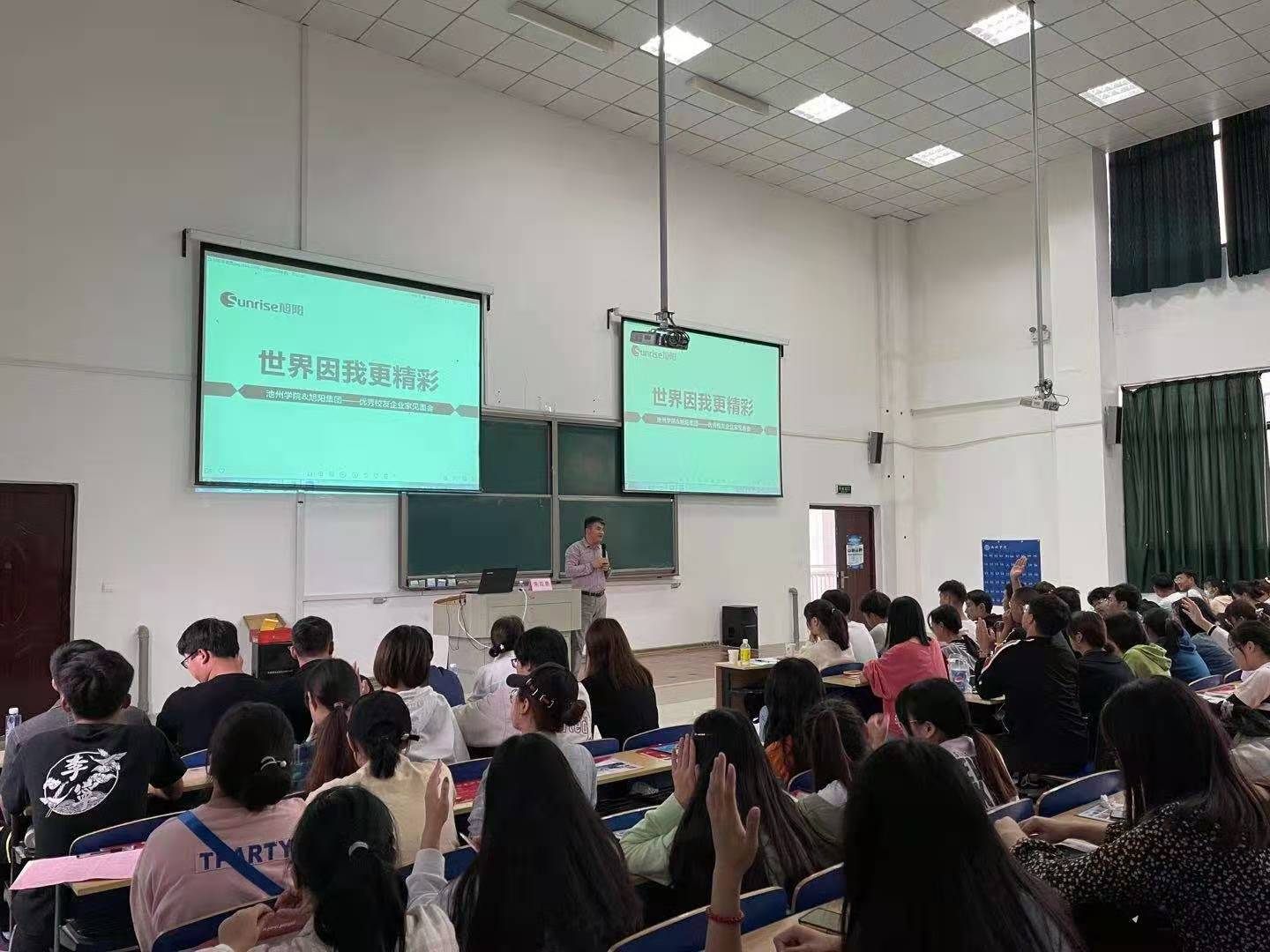 在3200威尼斯vip逸夫楼阶梯教室举办了“旭阳课堂”专题讲座。副校长阳光宁作重要致辞,他表示,学校一直以来都很重视校友资源以及与校友企业的合作,“旭阳课堂”是深化产教融合、校企合作、推动学科专业交叉融合教学改革创新的一种重要形式。他相信,通过“旭阳课堂”的持续开班,校企双方一定会充分发挥各自优势,创新合作机制,不断提高人才培养质量。旭阳集团董事长朱双单从自身感悟和心路历程出发,向学弟学妹们阐述了自己的创业励志经历,以及人生规划的重要性,并要求他们结合自身特点,找准赛道,去实现自己的人生目标。朱双单与现场同学进行自由交流,对于同学们提出的问题进行一一的耐心解答,并表示对于志同道合的同学,旭阳一定会敞开大门、期待加入。商学院和材环学院等不同专业近200名学生参加此次活动。