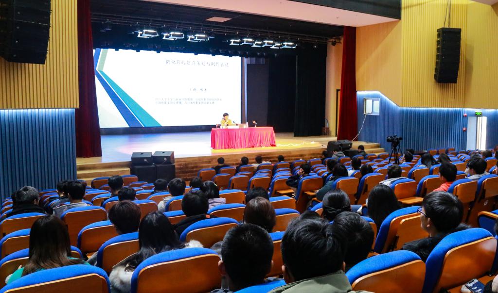 12月28日下午,在艺术楼音乐厅,四川大学文学与新闻学院曹峻冰教授应邀为文学与传媒学院师生做了题为“微电影的创意策划与剧作表达”的学术讲座。讲座由文学与传媒学院副院长高祥华主持。