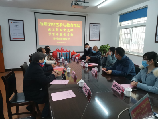 在援赠仪式结束后,艺术与教育学院党员教师与区福利院院长汪志文、儿童部主任陈洁进行了座谈交流。会上,杨静指出,艺术与教育学院基层党组织要发挥心理学等专业优势,为福利院提供更加多元的服务内容和服务形式,推行试点采用“二对一”的帮扶长效机制,对福利院的儿童进行全方面的教育帮扶和心理援助,以使他们将来能很好地步入社会、融入社会,为社会贡献自己的力量。
