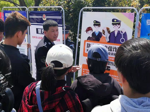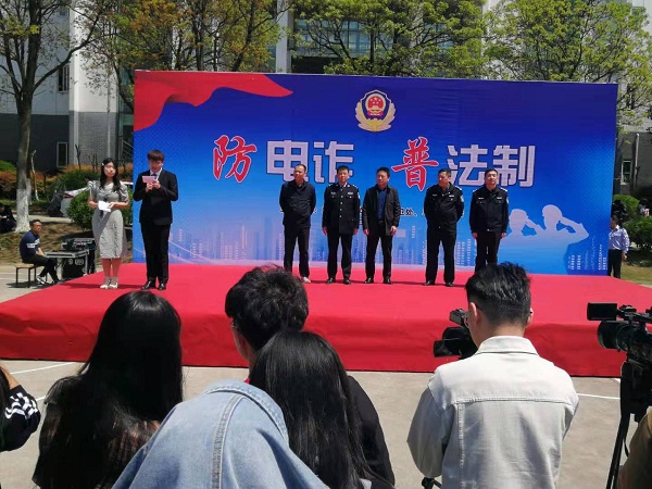 为促进全校学生进一步增强预防电信网络诈骗的意识和能力,有效遏制电信网络诈骗案件频发高发势头,4月9日中午,威尼斯官网学生处、保卫处、贵池公安分局马衙派出所联合举办了“防电诈•普法制”宣传教育活动。