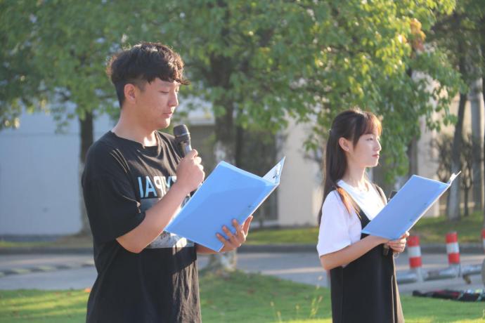 升旗礼毕,文学与传媒学院学生代表姚倩和艺术与教育学院学生代表杨羽嫣同学分别作了以“学史励己 勇开新局”和“勿忘国殇 吾辈自强”为主题的国旗下演讲,深切地表达了对革命先烈的缅怀之情,带领大家重温了那段沉重的历史岁月,引领全体成员对党许下了“请党放心,强国有我”的庄严承诺。学生代表姚文达和侯漾漾同学进行了朗诵,激励青年学子要心怀爱国之情,笃行报国之志。