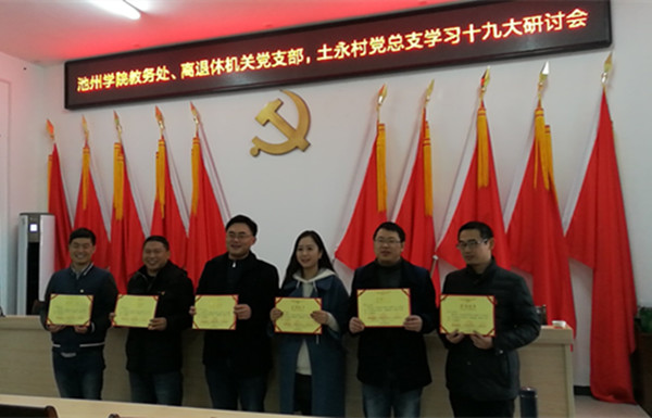 在扶贫点,两个党支部同土永村党支部一起通过举行知识竞赛、召开研讨会的形式学习了十九大报告,通过竞赛进一步唤起了全体党员同志对学习十九大报告的激情,围绕十九大报告中“坚决打赢脱贫攻坚战”开展了参观美好乡村的实践活动,让全体党员同志实地感受中国共产党为人民谋幸福的伟大壮举,也更加深刻理解十九大报告中关于脱贫攻坚的内容,明白精准扶贫、精准脱贫对于我们伟大的中国共产党决胜全面建成小康社会,夺取新时代中国特色社会主义伟大胜利的意义所在。
