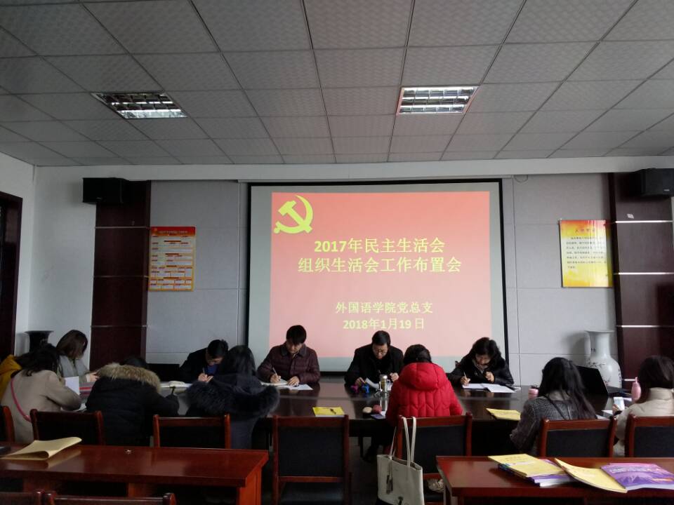 1月19日上午,外国语学院党总支在会议室举行二级中心组专题学习会,学习习近平总书记在中共中央政治局民主生活会和十九届中纪委二次全会上的重要讲话。外国语学院党总支委员、各支部委员参加,会议由外国语学院党总支书记张乐民主持。