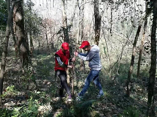 在认真聆听现场林地工作人员讲述植树的要领和日常维护树木的知识后,大家拿上工具,亲手种植了自己带来的一棵棵小树苗,对歪倒倾斜的树木进行了扶正和加固,并沿途清理了游客们丢下的垃圾,使齐山公园的树木更加挺拔葱翠,道路更加清洁。