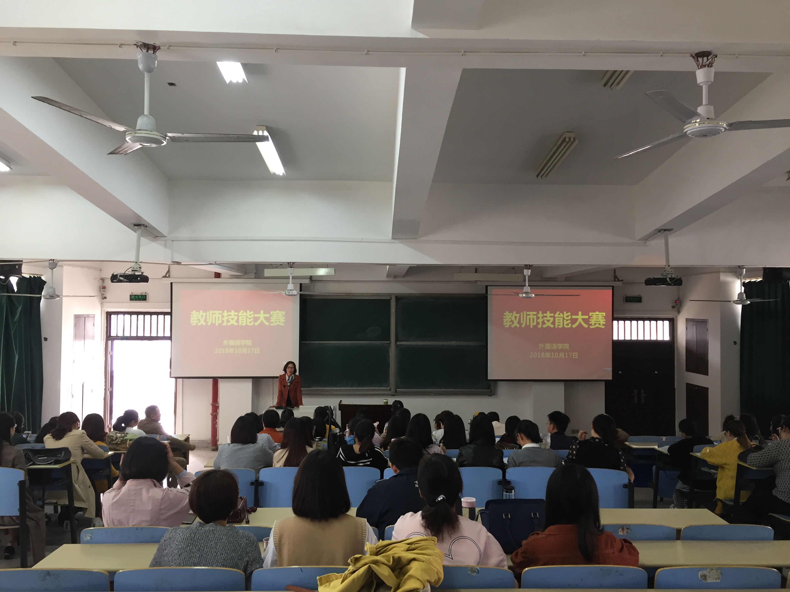 为迎接本科教学工作审核性评估,切实提高教师教学水平和课堂教学质量,外国语学院从开学以来就启动了课堂教学“人人过关”活动。10月17日下午外国语学院在博学阶301举行了教师教学技能大赛,共有9位教师参加比赛,其他教师都列席旁听。