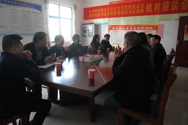 座谈会上,何家荣介绍了旅游与历史文化学院党总支和各支部情况,提议双方在党建、扶贫帮困、党员教育等方面开展结对共建,董秀萍介绍了杨安社区区情和党组织建设情况,双方一致表示将以此为契机,把“结对共建”工作做细做实,以此推动双方党组织建设,激发双方党组织活力,提高双方党组织创造力、建设力。