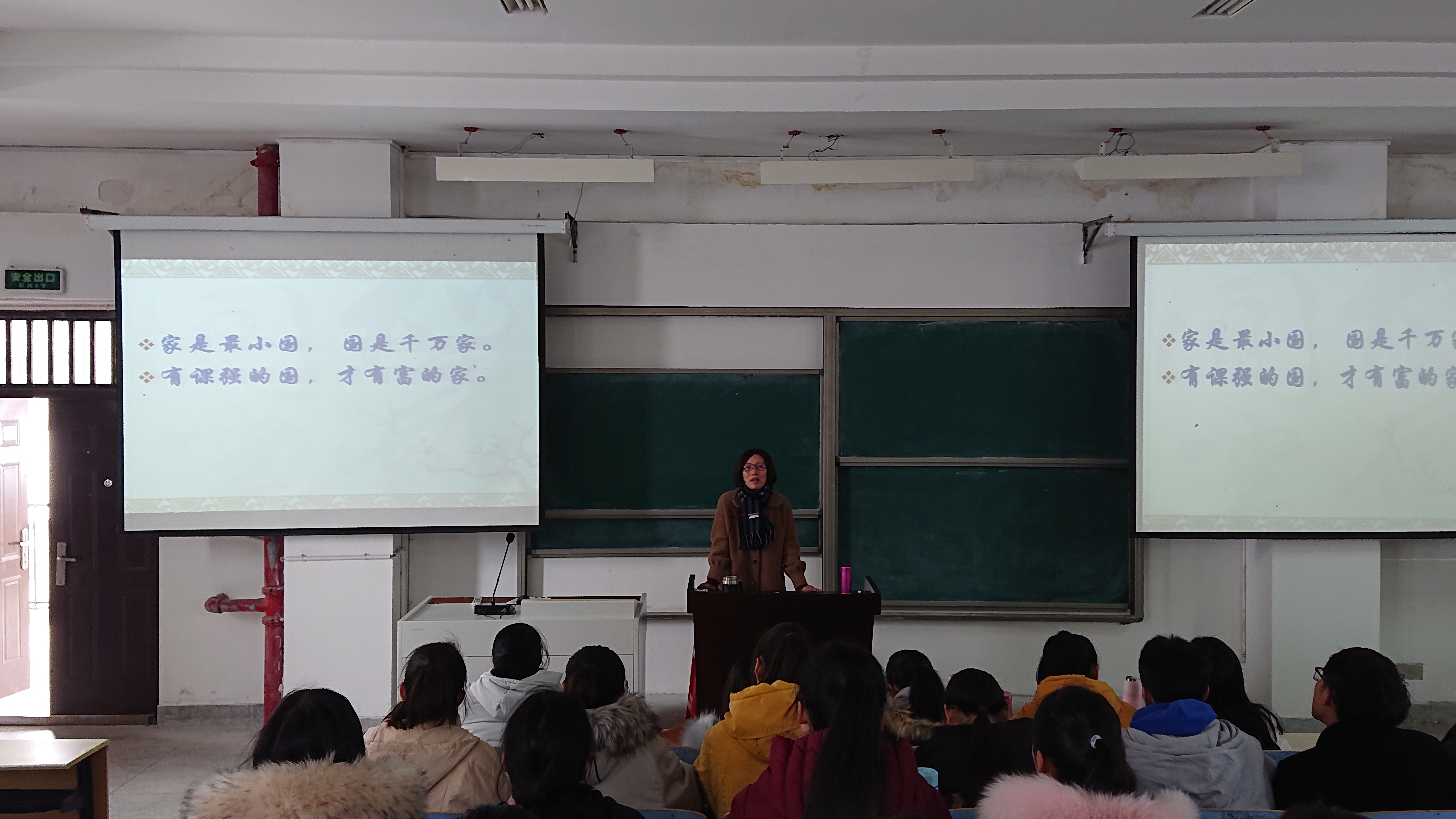 方瑞芬以“弘扬爱国主义精神,争做中华优秀文化传播者”为题,从“爱国主义含义、基本要求、时代价值以及新时期爱国主义与民族文化传播等几个方面,以大量生动的案例向学生们讲授了爱国主义精神内涵和民族文化传播的意义。同时,方瑞芬结合英语专业人才培养方案,加强学生专业认知,强调作为外语专业学生,担负着传播中华民族文化的历史重任。她希望同学们能立足于所学专业,要了解中国的优秀文化,努力提高综合素质。