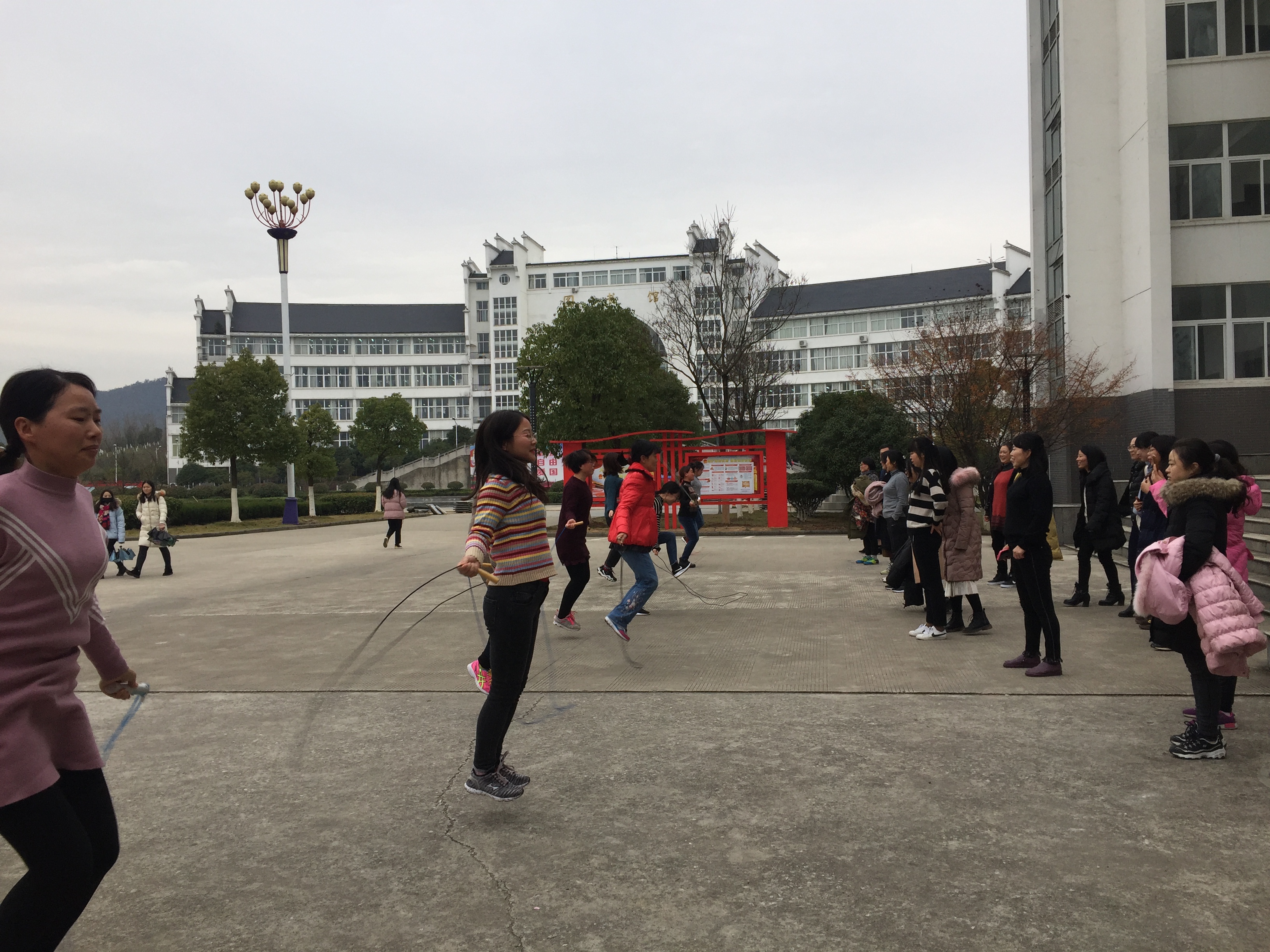 为激励教职工参加体育锻炼,增强体质,活跃教职工生活,增进集体凝集力,12月19日下午外国语学院分工会举行了1分钟计数跳绳比赛。