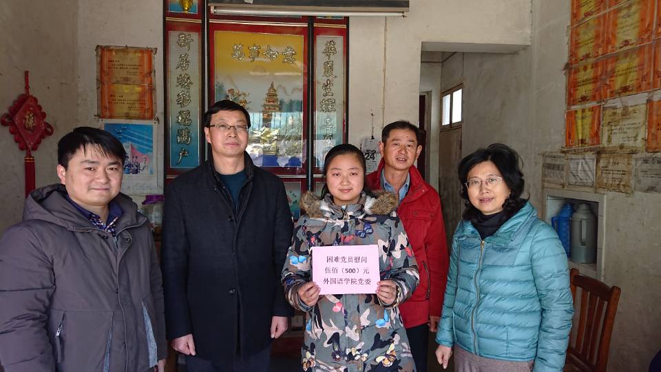 1月24日上午,外国语学院党委一行走访慰问了困难学生党员徐浩东一家,为他们送去新年的问候及美好的祝愿并送上500元慰问金、大米和食用油等过节物品。