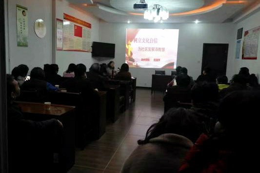 3月11日,文学与传媒学院党员教师、教工第二支部组织委员程淑萍为汇景社区2019年春训班的党员同志做题为《树立文化自信,为社区发展添智慧》的党课交流报告。