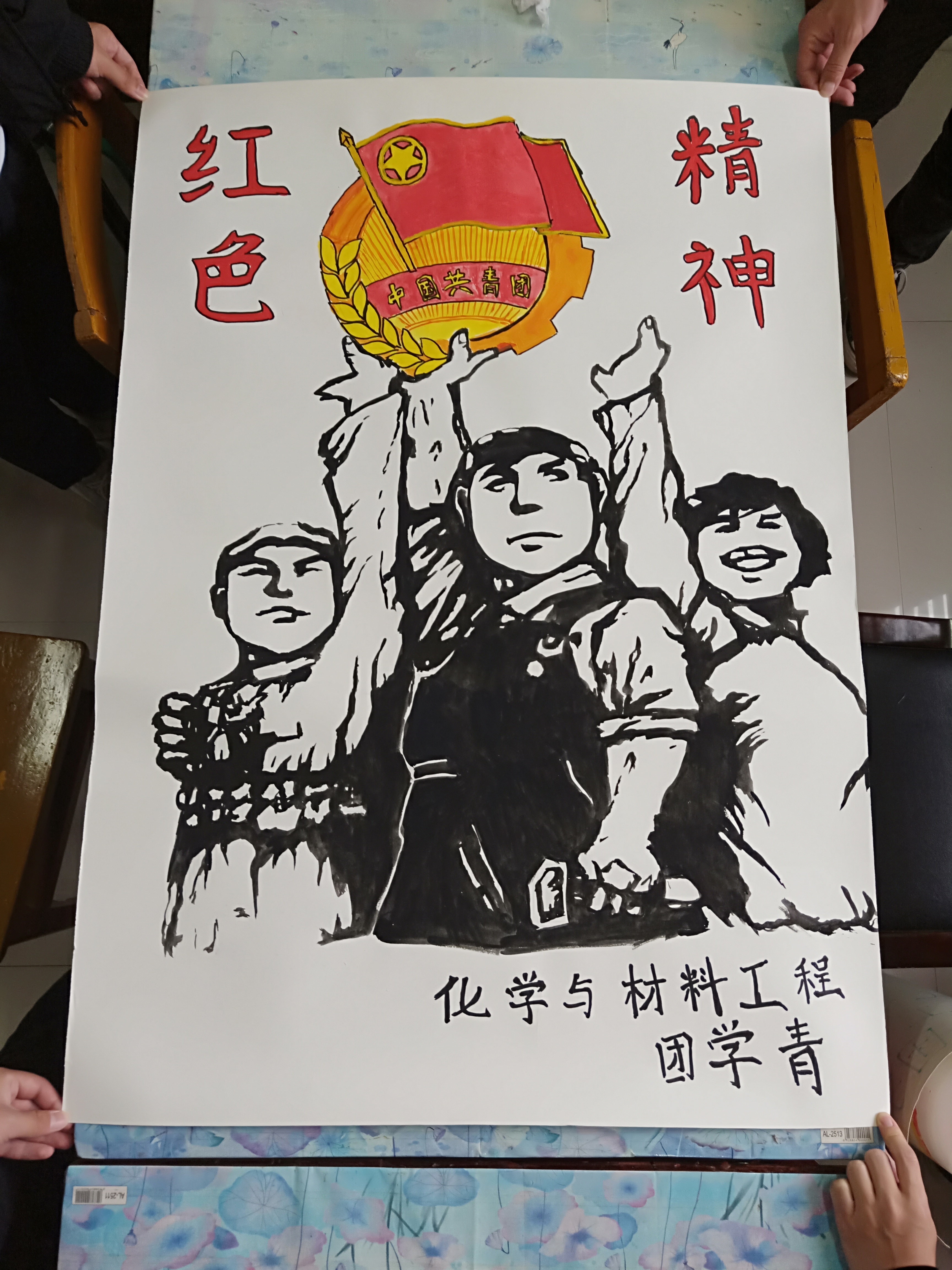 为庆祝新中国成立七十周年,弘扬爱国主义精神。化学与材料工程学院于4月13日在逸夫楼值班室进行以“让信仰对话,让青春飞扬”为主题的绘制红色海报比赛。由17级和18级组成的14支团队参加比赛。