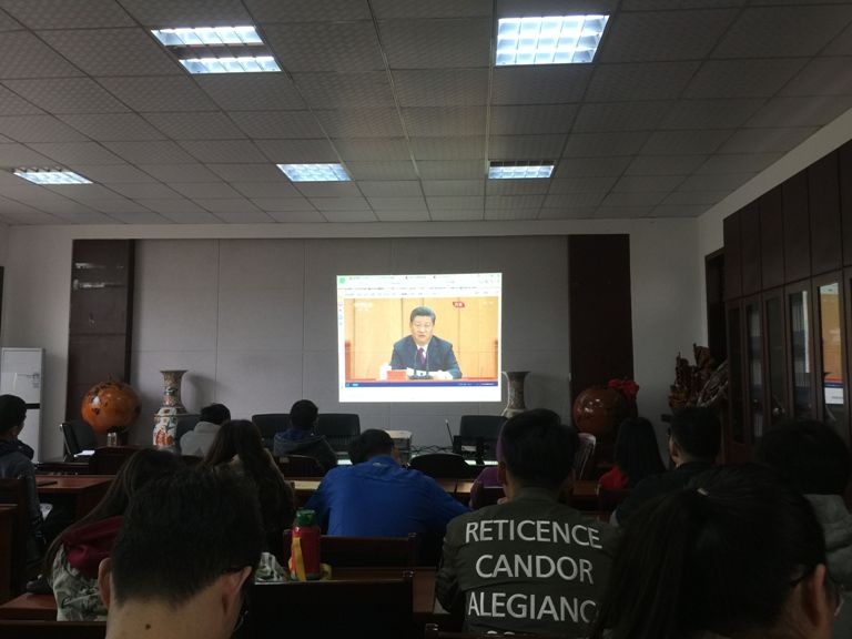 4月30日上午10:30,资源环境学院在博文楼会议室组织观看纪念五四运动100周年大会直播,学院党政领导、教师代表、学生党员及全体团学干部认真聆听了习近平总书记在会上的重要讲话。