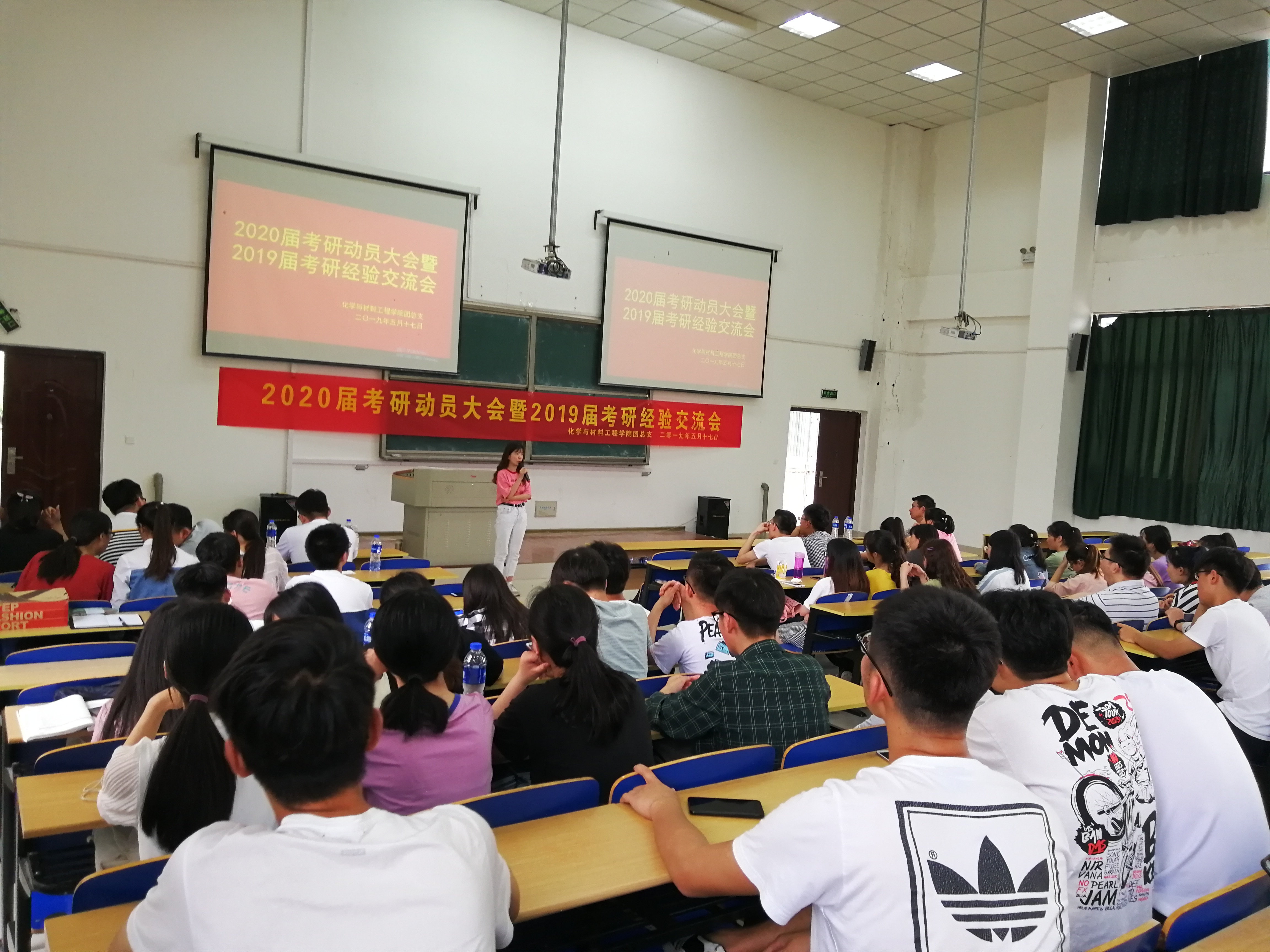 5月17日,化学与材料工程学院在逸夫楼阶梯教室举办2020届考研动员大会暨2019届考研经验交流会。本次会议由团总支关旋主持,邀请教学主任陆志敏以及16级三位辅导员出席会议。同时邀请孙梦冉、江永、耿榕榕、田娅娅、张文浩、胡奔六位优秀学生分享考研经验。
