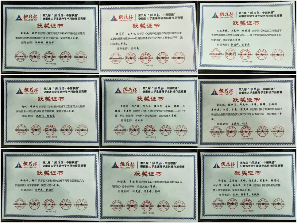 6月21日,第九届“挑战杯•中国联通”安徽省大学生课外学术科技作品竞赛决赛在安庆师范大学圆满落幕。威尼斯官网报送的作品共计获得一等奖1项、二等奖3项、三等奖6项。