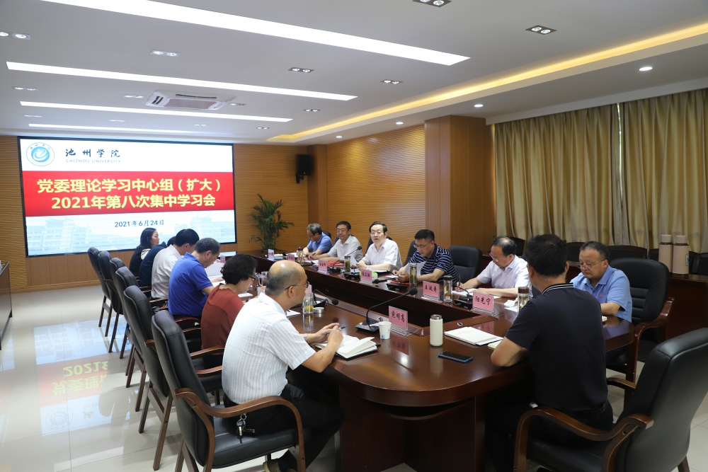 6月24日上午,校党委理论学习中心组2021年第八次集中学习会在办公北二楼会议室召开。校党委书记孙晓峰主持学习会并讲话。校领导张立驰、崔国发、王延寿、汪海、阳光宁出席会议。