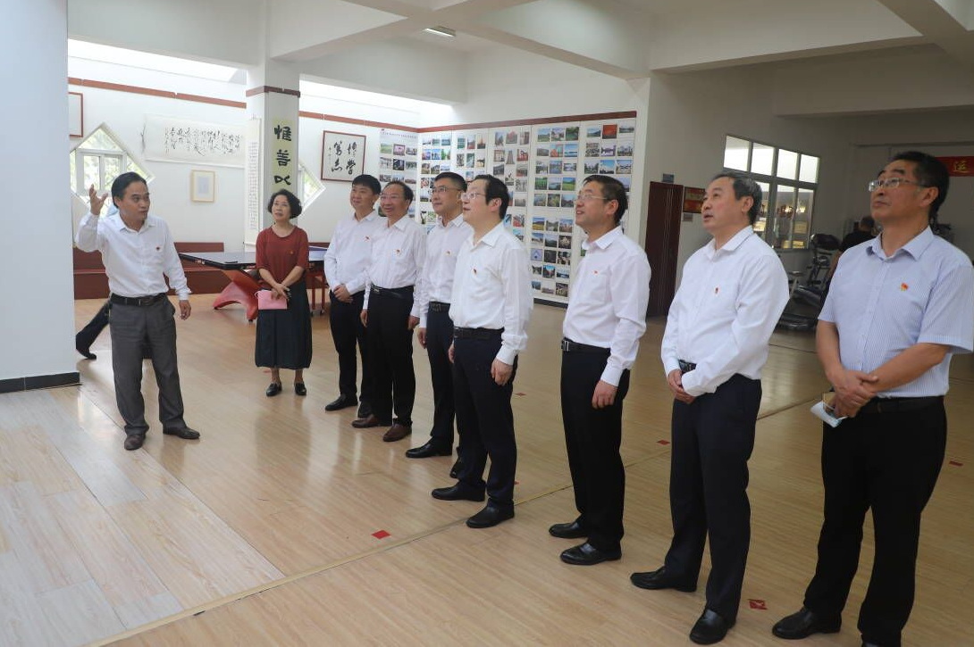 6月28日,3200威尼斯vip“庆百年华诞·展池院风采”庆祝建党100周年书画摄影展在行政南一楼工会活动室开展。校领导孙晓峰、张立驰、崔国发、王延寿、汪海、阳光宁、汪贤才在相关部门负责人的陪同下参观了展览。