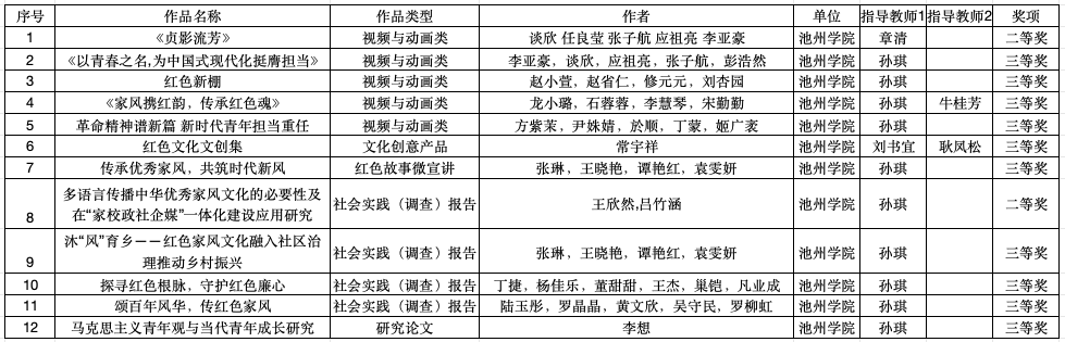 近日,马克思主义学院学子在安徽省第四届大学生红色文化学习与创意设计成果邀请赛中获奖12项,其中二等奖2项,三等奖10项。